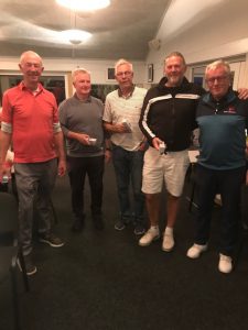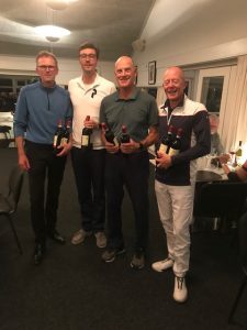 Vi lagde lidt ekstra til i konkurrencerne, idet vi spillede individuel Stableford, færrest put, tættest flaget, længste drive og endelig Irish Scramble. Det er en holdkonkurrence, hvor holdets bedste score tæller på hul 1-6, to bedste scores på hul 7-12 og tre bedste på hul 13-18.